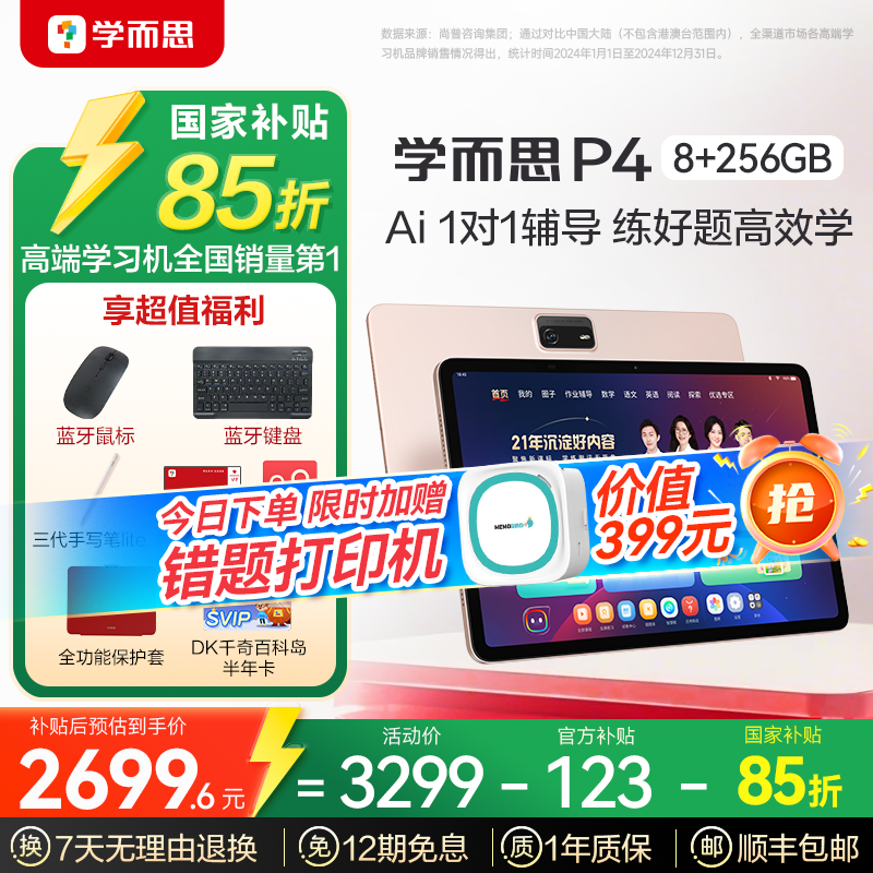 学而思网校推出的2025新款学而思学习机p4(256gb)来啦!它可是极具性价比的学习利器。有专业老师领学,内容丰富,涵盖学前启蒙、幼小衔接以及小学到高中的学习内容,配备ai功能,就像孩子身边的专属学习小助手。这款学习机颜色为p4经典配色,内存256gb,官方标配。目前...